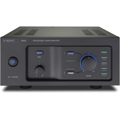 Rack mount ενισχυτής με μίκτη 60W@70V/100V/4ohm• Μια είσοδος, Emergency input. Balanced 0 dBV line με euroblock connector. Ενεργοποιείται με την χρήση επαφής contact closure. • Μια είσοδος Paging mic input: Balanced euroblock /stereo RCA. Διακόπτης λειτουργιάς εισόδου mic/line. Διαθέτει ρυθμιζόμενο chime και ενεργοποιείται με την χρήση επαφής contact closure. • Μια είσοδος MIC/Line stereo: Balanced euroblock /stereo RCA. Διακόπτης λειτουργιάς εισόδου mic/line με 48v phantom power. Ρυθμιζόμενο gain και EQ, Lo και Hi. • Δυο Line stereo RCA: Ρυθμιζόμενο gain για κάθε είσοδο και EQ, Lo και Hi και Rec out. • Priority Out, 24v DC ενεργοποιούμενη από τις εισόδους emergency. • Speaker Out, 100V / 70V / 4Ω με EQ, Lo και Hi Διαθέτει ρυθμιστικά volume control MIC, master volume control και φωτιζόμενους επιλογείς πηγών line. Διαστάσεις 250x240x89mm, 2U, 2,6 Kg