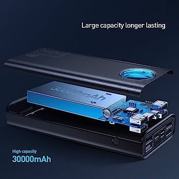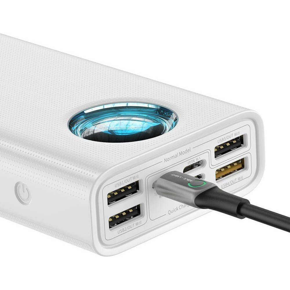 Το power bank της Baseus έχει χωρητικότητα 30000mAh που μπορεί να προσφέρει 5-6 φορτίσεις σε ένα συνηθισμένο κινητό τηλέφωνο. Διαθέτει 4 θύρες USB-A, μία θύρα USB-C, και μπορεί να φορτίσει μία συσκευή με έως και 3Α.