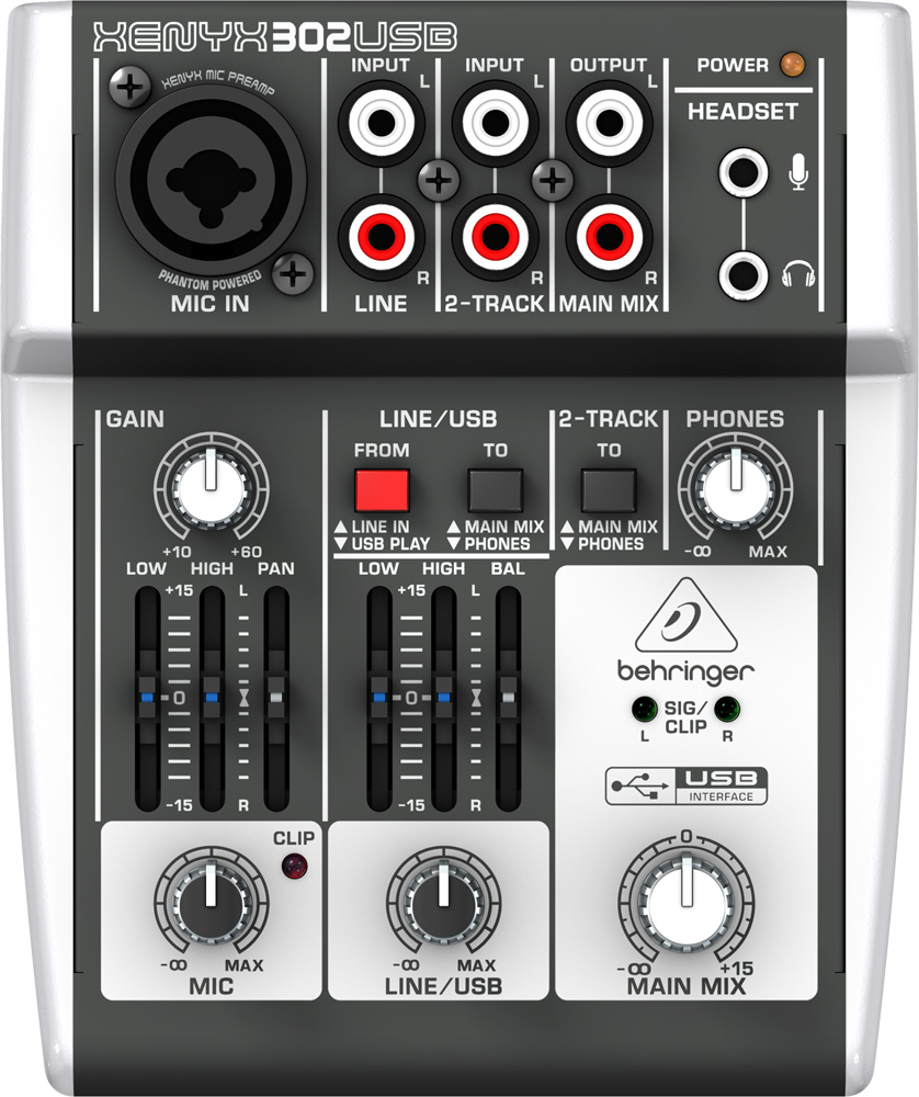 Αναλογική κονσόλα μίξης 5 εισόδων (1 x mic in – 1 x stereo line in με RCA), δυνατότητα σύνδεσης με υπολογιστή μέσω USB, equalizer δυο περιοχών, είσοδος headset Η/Υ (με mini jack βύσματα), 2-track in, έξοδος ακουστικών με ρυθμιστή volume.
