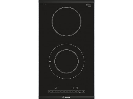 Εντοιχιζόμενη εστία κουζίνας PKF375FP2E από τον κατασκευαστή Bosch, με 2 ζώνες μαγειρέματος. Είναι κεραμική με γυάλινη λεία επιφάνεια, η οποία όταν θερμαίνεται αλλάζει σε κόκκινο χρώμα. Θερμαίνεται πολύ γρήγορα και ομοιόμορφα χάρις στις θερμαντικές αντιστάσεις που βρίσκονται κάτω από την επιφάνειά της. Επίσης ο καθαρισμός της είναι πιο εύκολος, σε σχέση με τις κλασικές εμαγιέ εστίες. Η λειτουργία της είναι αυτόνομη, δηλαδή μπορεί να λειτουργήσει μόνη της χωρίς την ανάγκη για σύνδεση με φούρνο. Αυτό σημαίνει ότι μπορεί να τοποθετηθεί σε οποιοδήποτε σημείο της κουζίνας που σας εξυπηρετεί καλύτερα. Είναι κατάλληλη για συνδυασμό με φούρνο άνω πάγκου, αφού ο φούρνος μπορεί να τοποθετηθεί οπουδήποτε, ανεξάρτητα από τις εστίες.