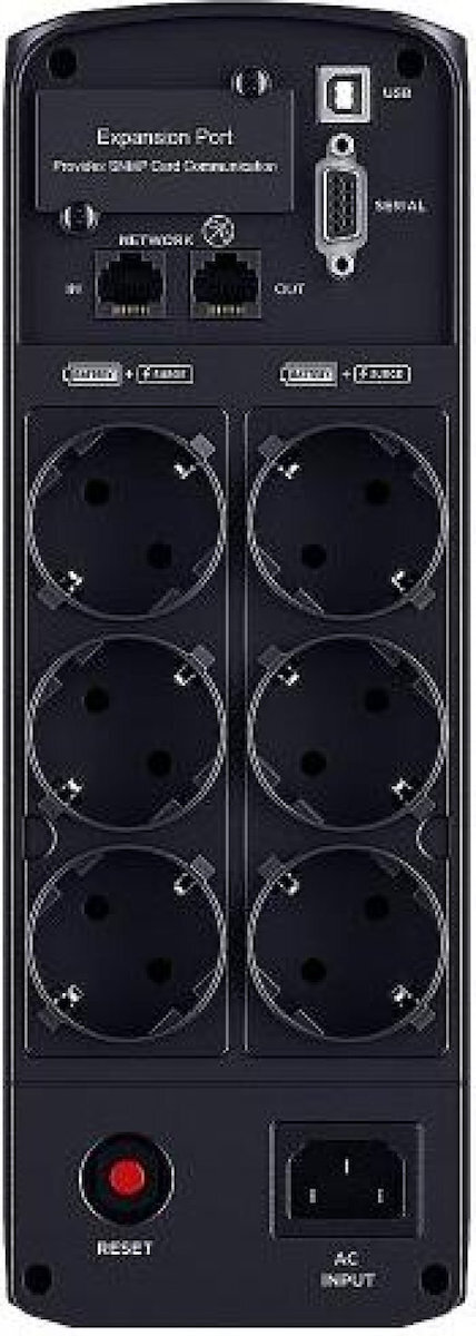 Το UPS παρέχει αυτόματη ρύθμιση τάσης (AVR) για τη διατήρηση σταθερής τάσης για συνδεδεμένο εξοπλισμό. Το προϊόν διαθέτει προστασία γραμμής δεδομένων με μετάδοση υψηλής ταχύτητας για προστασία του εξοπλισμού επικοινωνίας από υπερτάσεις/spikes καθώς και παροχή ταχύτητας 1 Gbps για μετάδοση δεδομένων. Με έγχρωμο πάνελ LCD, οι χρήστες μπορούν να παρακολουθούν τις πληροφορίες τροφοδοσίας και μπαταρίας. Το λογισμικό διαχείρισης ενέργειας PowerPanel επιτρέπει στον χρήστη να πραγματοποιεί παρακολούθηση και διαμόρφωση σε πραγματικό χρόνο.