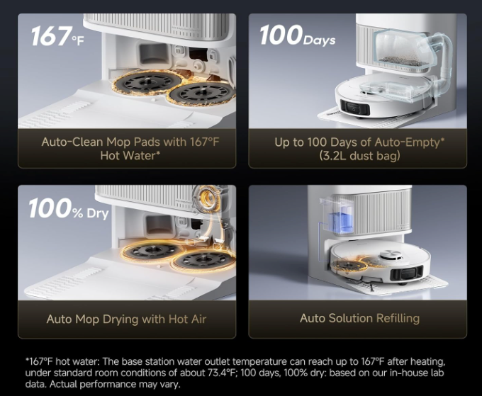 ✓ PowerDock™ All-in-One σταθμός: Αυτόματο άδειασμα, πλύσιμο και στέγνωμα σφουγγαριού με ζεστό νερό.