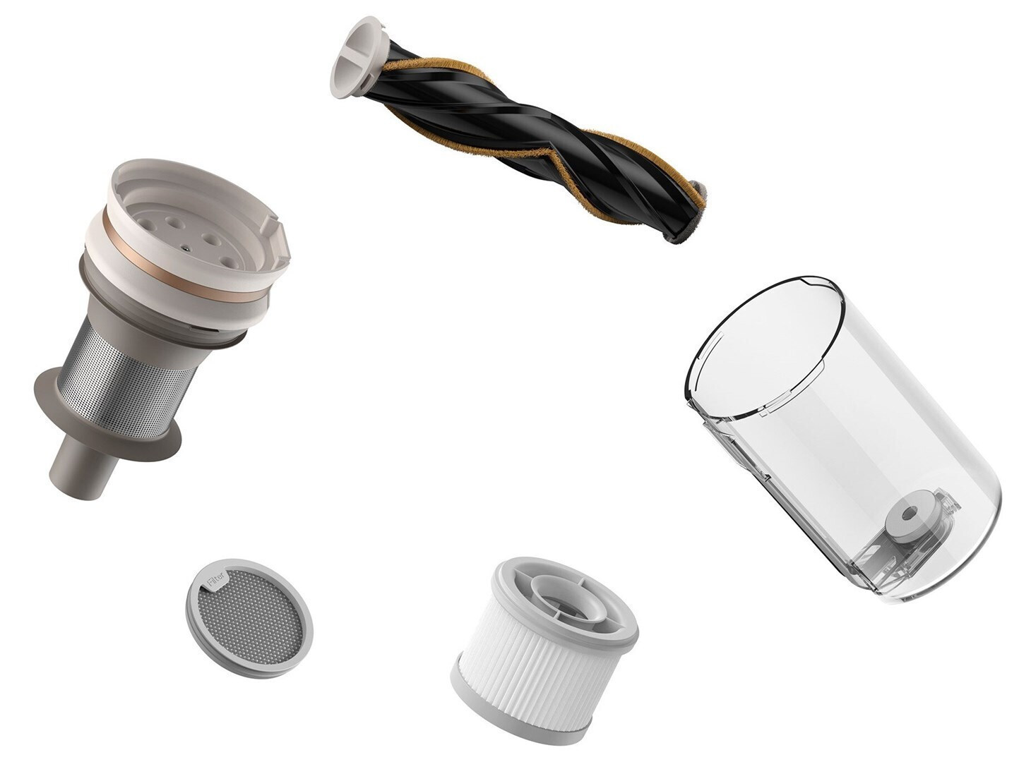 - Μια ισχυρή μπαταρία 2500 mAh είναι υπεύθυνη για τη λειτουργία χωρίς καλώδιο, επιτρέποντάς σας να καθαρίσετε μέχρι 60 λεπτά.