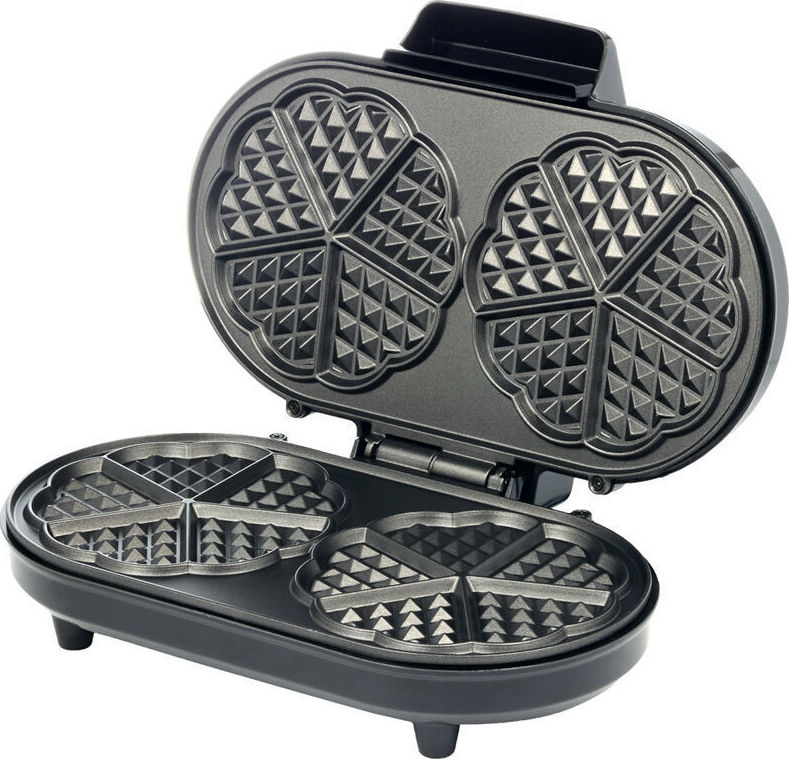 Βαφλιέρα για 10 μικρές βάφλες σε σχήμα καρδιές 1000W με αντικολλητικές πλάκες. Χάρη στην αντικολλητική της επίστρωση δεν χρειάζεται λάδι, για να φτιάχνετε πιο ελαφριές και γευστικές βάφλες και να μπορείτε να τις αφαιρείτε εύκολα.
