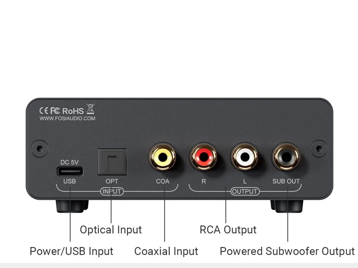 - Input: USB Type-C, Optical, Coaxial