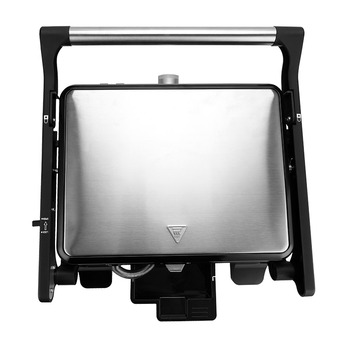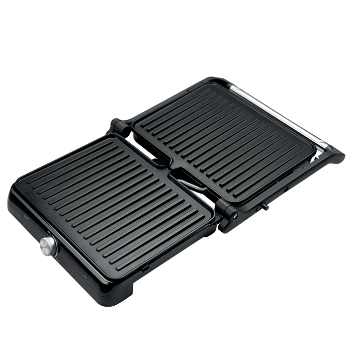 Το άνοιγμα της άνω πλάκας κατά 180° διπλασιάζει την συνολική της επιφάνεια και σας λύνει τα χέρια ακόμα κι αν έχετε μεγάλες ποσότητες κρέατος για ψήσιμο!