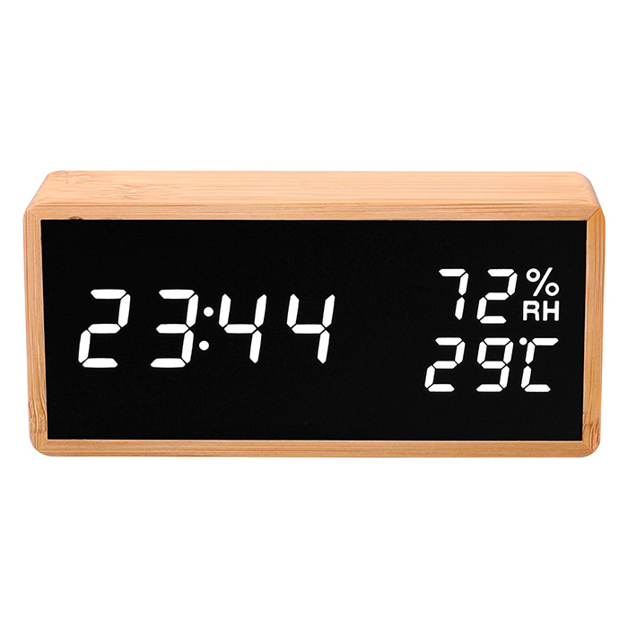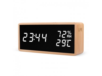 Bamboo ψηφιακό θερμόμετρο/υγρόμετρο εσωτερικού χώρου, με ρολόι, ξυπνητήρι και ημερολόγιο.