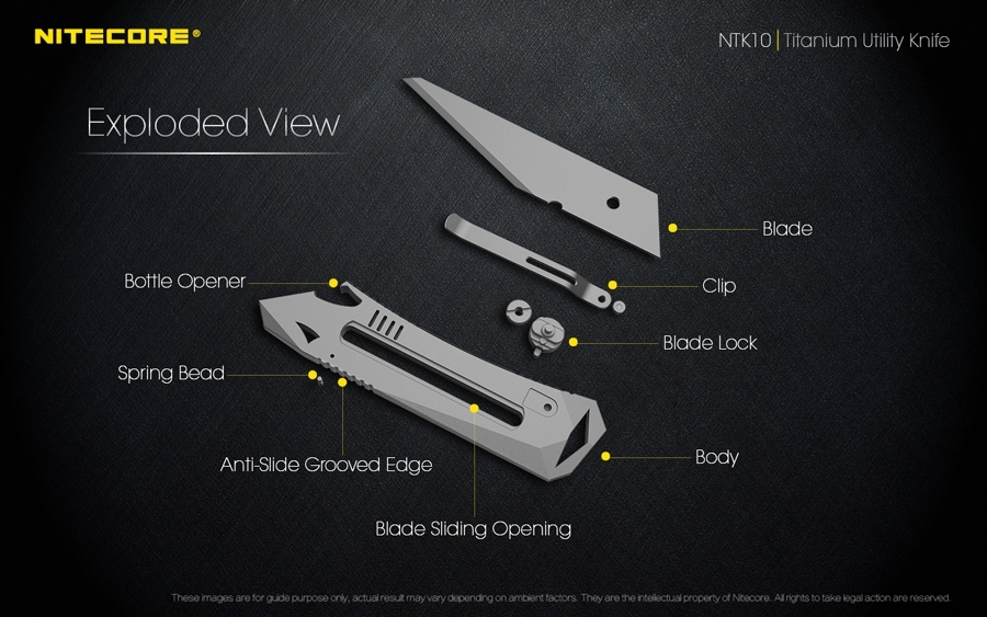 Το πρώτο χρηστικό μαχαίρι Τιτανίου της NITECORE κατασκευασμένο από κράμα Τιτανίου αεροναυπηγικής/διαστημικής ποιότητας. Διαθέτει υψηλή αντοχή, χαμηλή πυκνότητα και ανθεκτικότητα στη διάβρωση.