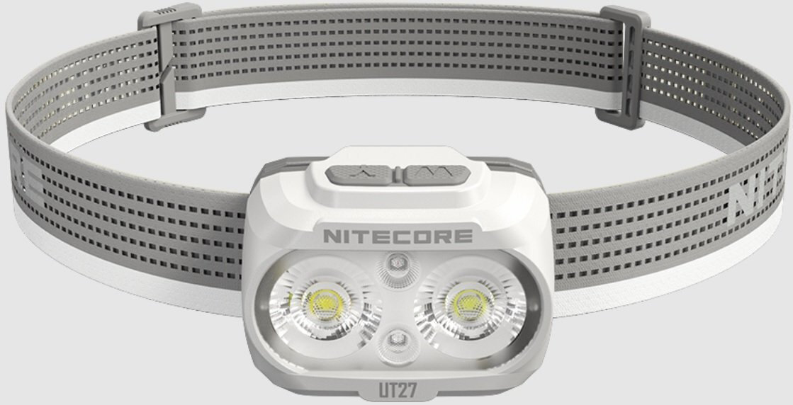 UT27 Pro της Nitecore σε χρώμα Titan White, είναι ένας αδιάβροχος, επαναφορτιζόμενος φακός κεφαλής, εξαιρετικά ελαφρύς και ανθεκτικός, αποτελεί την ιδανική επιλογή για αγώνες ορεινού τρεξίματος.