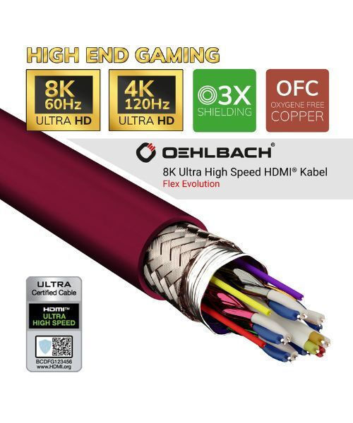 Oehlbach Flex Evolution UHD Καλώδιο HDMI Ultra High Speed Bordeaux 2m