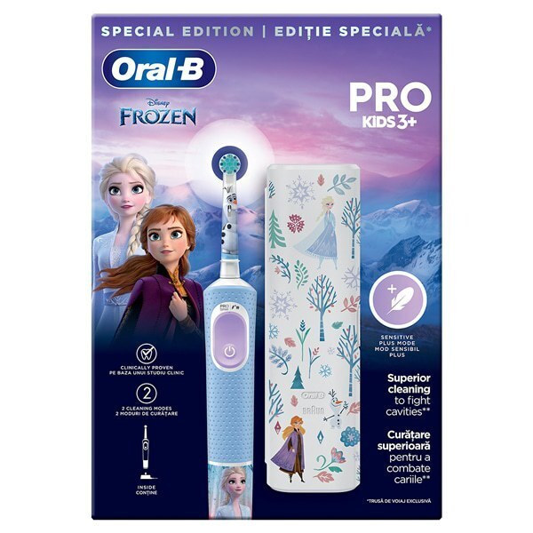 Η παιδική ηλεκτρική οδοντόβουρτσα Oral-B Vitality PRO συνιστάται από οδοντιάτρους για ηλικίες 3+ ετών και προσφέρει απαλό και αποτελεσματικό καθαρισμό. Με 2 προγράμματα βουρτσίσματος, ένα για καθημερινό καθαρισμό και ένα για βούρτσισμα των ευαίσθητων παιδικών δοντιών για έναν πολύ απαλό καθαρισμό. Απομακρύνει περισσότερη πλάκα από μια απλή χειροκίνητη οδοντόβουρτσα. Περιλαμβάνει 4 θεματικά αυτοκόλλητα για διακόσμηση της λαβής.