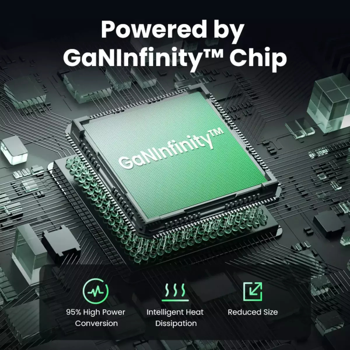 Ο φορτιστής UGREEN Nexode Pro αξιοποιεί την καινοτόμο τεχνολογία GaNInfinity, παρέχοντας υψηλότερη απόδοση και συμπαγή σχεδίαση. Έχει έξυπνη διάχυση θερμότητας, διασφαλίζοντας τη διατήρηση της ιδανικής θερμοκρασίας κατά τη διάρκεια της φόρτισης.