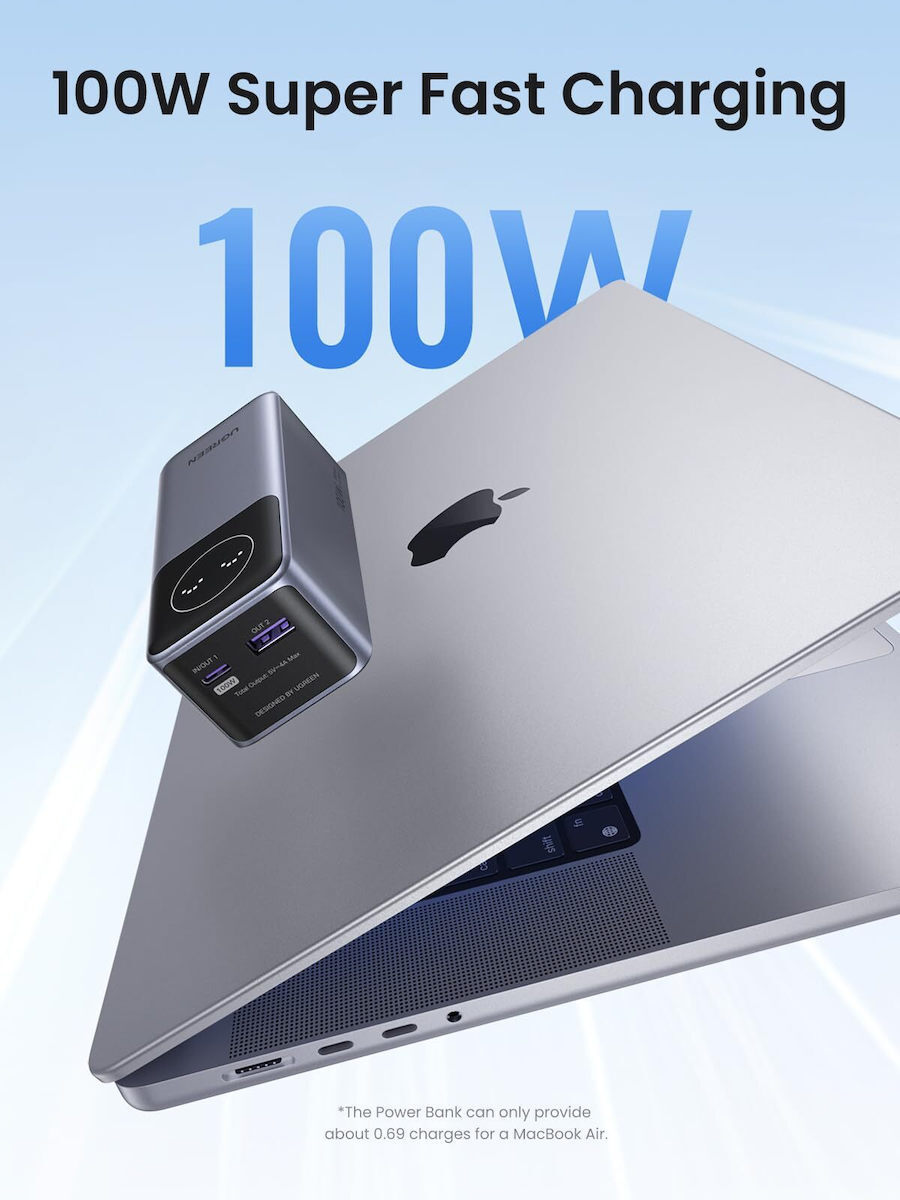 :Ultra-fast 100W Output Light & Compact,4.5 /1.8 / 1.8 inches,309g Charging 3 Devices at Once 65W High-Speed, supports two-way fast charging Broad compatibility: UGREEN battery bank can handle a variety of charging protocols, including PD, PPS, QC, AFC,FCP, and SCP