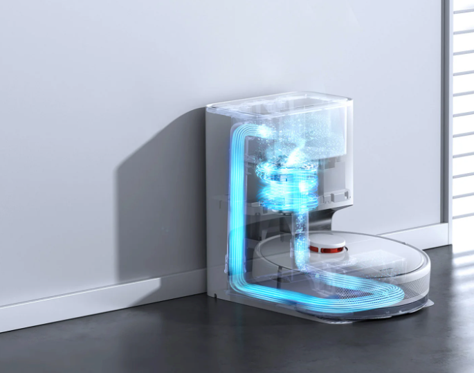 ✓Αυτόματη βάση συλλογής σκόνης με διπλό κανάλι και αναρρόφηση 17.000Pa