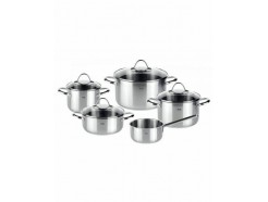 Σετ κατσαρόλες κατασκευασμένες από ανοξείδωτο ατσάλι, οι οποίες διαθέτουν γυάλινο καπάκι για εξοικονόμηση ενέργειας. Είναι κατάλληλες για χρήση σε όλες τις εστίες, τον φούρνο και σε πλυντήριο πιάτων.