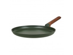 Τηγάνι αντικολλητικό. Σύγχρονος σχεδιασμός, εσωτερική αντικολλητική επίστρωση 4 στρώσεων, εξωτερικό ανθεκτικό στη θερμότητα, ξύλινη εργονομική λαβή μαλακής αφής.